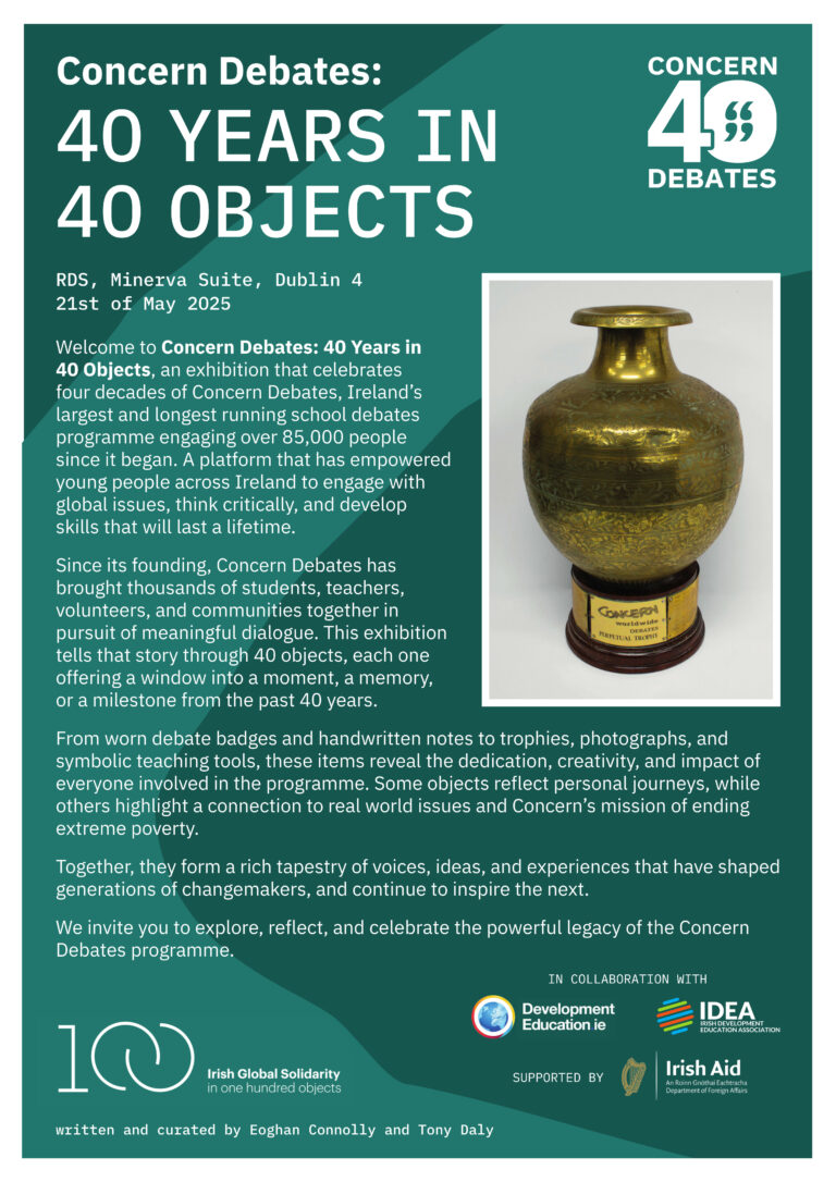 The Concern Debates: 40 Years in 40 Objects exhibition celebrated four decades of Concern Debates, Ireland’s largest and longest running school debates programme engaging over 85,000 people since it began.
