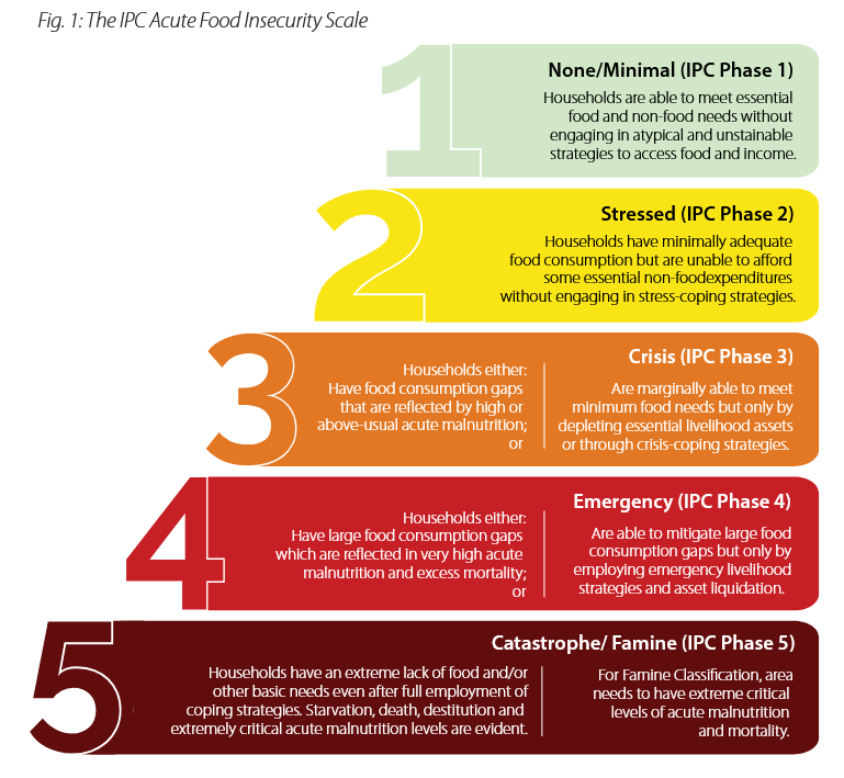 The Integrated Food Security Phase Classification (IPC) defines famine as an extreme deprivation of food. Starvation, death, destitution and extremely critical levels of acute malnutrition are or will likely be evident.